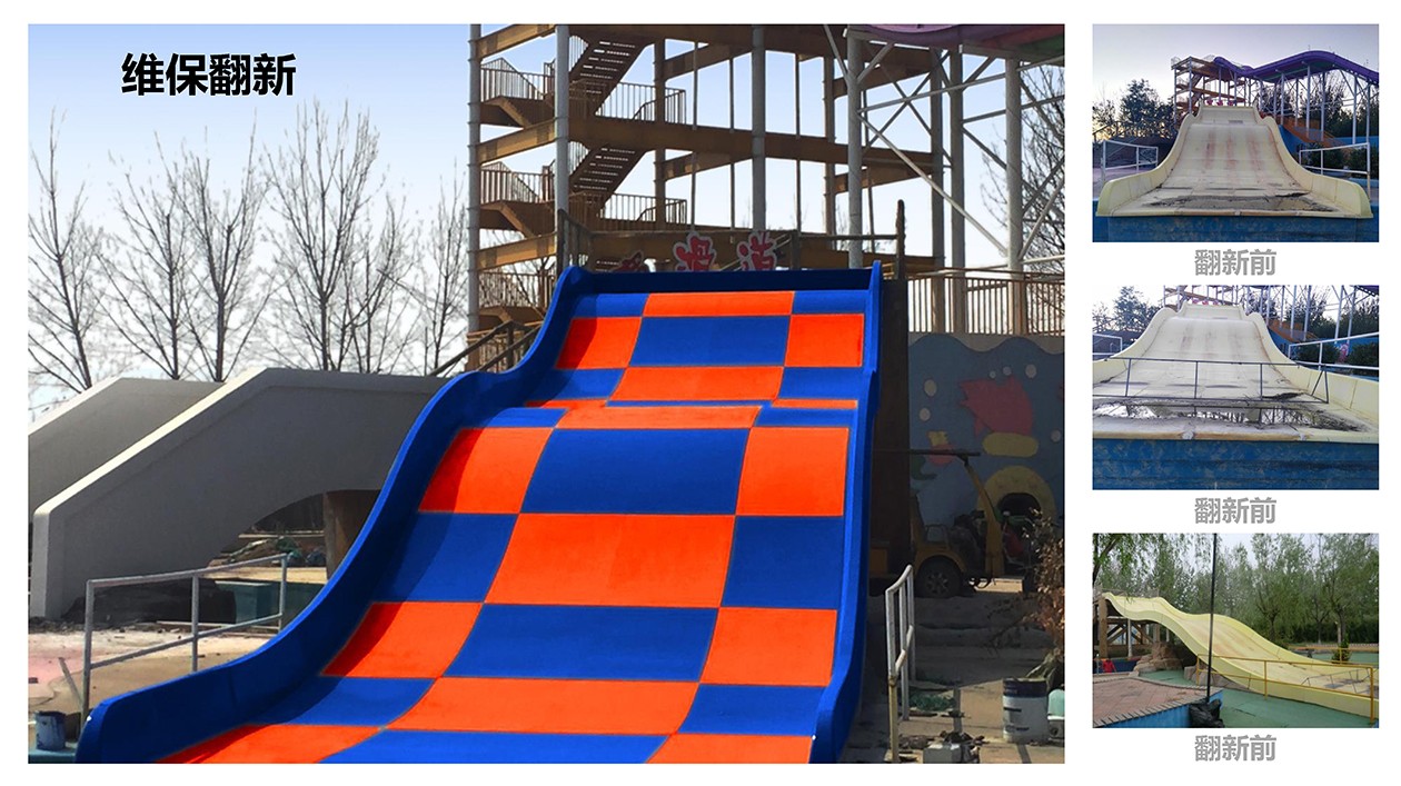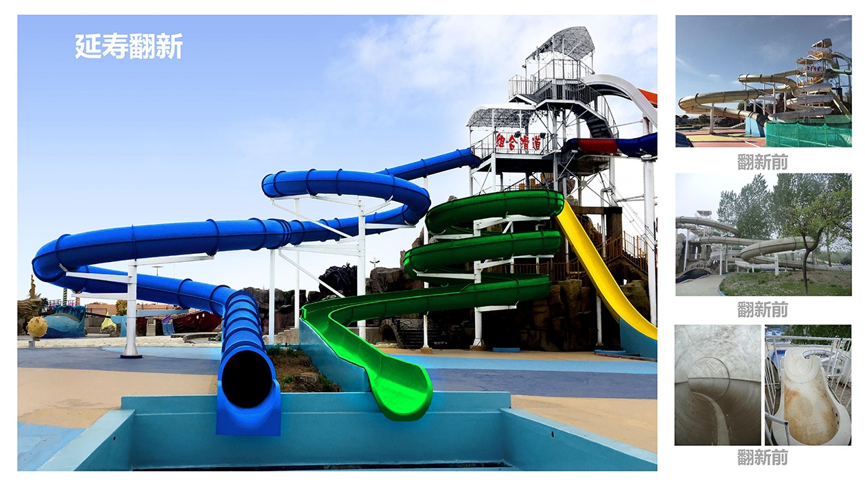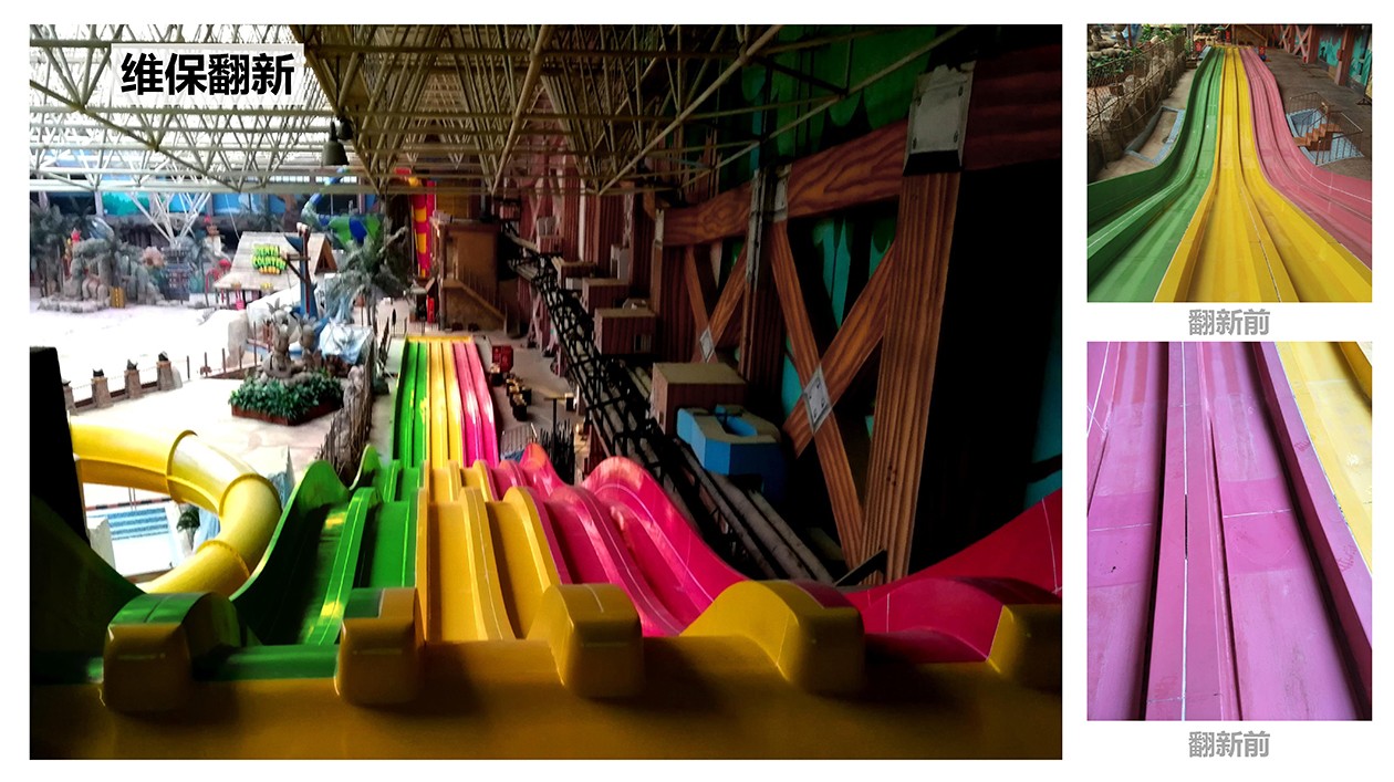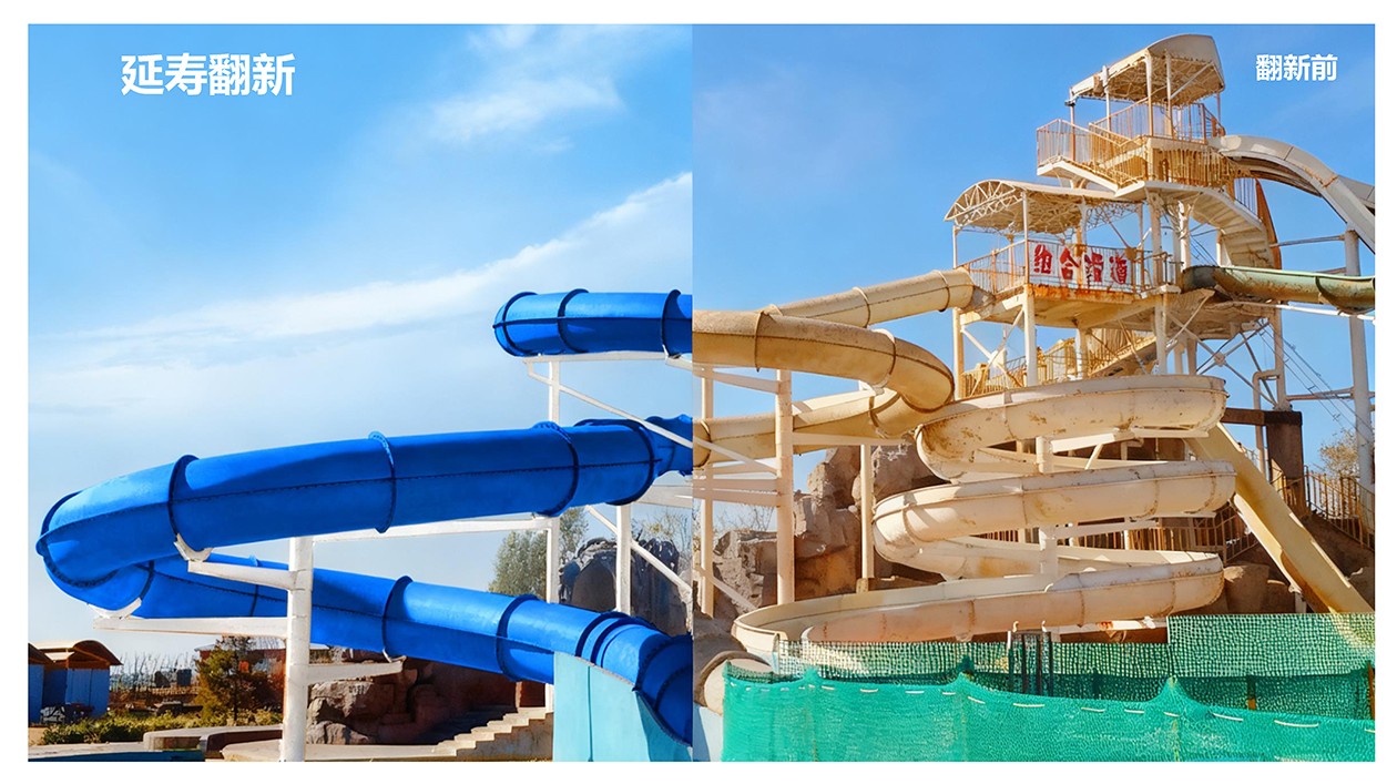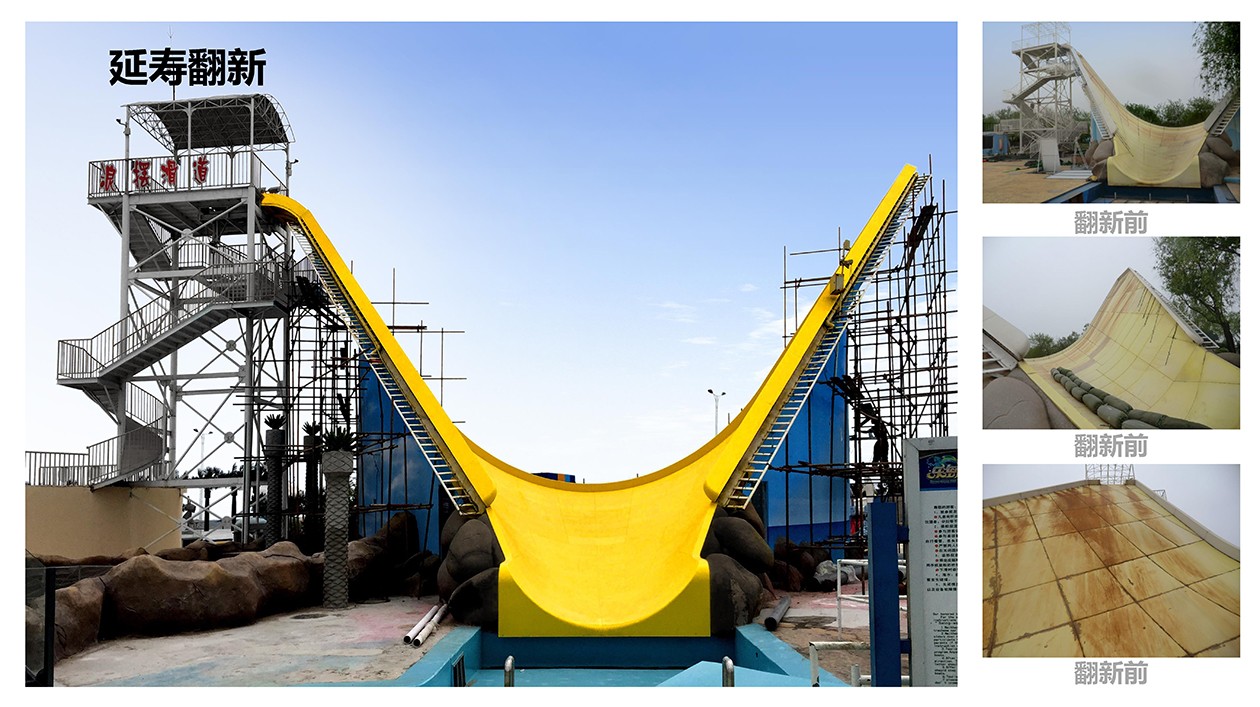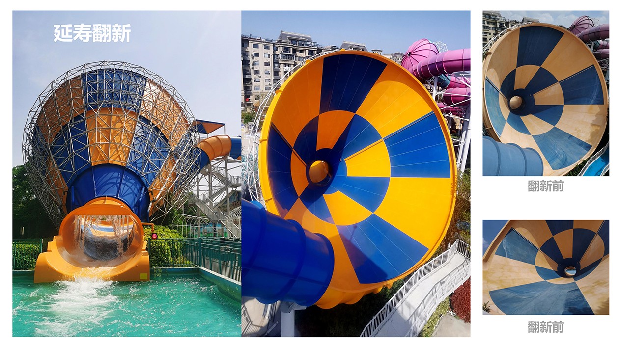 据统计,水上乐园设备尤其是户外水上乐园,经过5至10年的运营使用后,都会因使用环境、运营损耗、维护不当、水滑道特殊的玻璃钢属性等原因造成设备老化,如果您发现您的乐园出现以下现象: