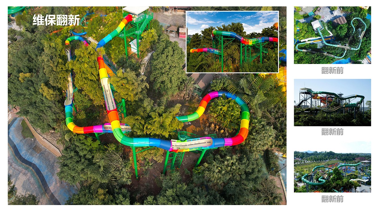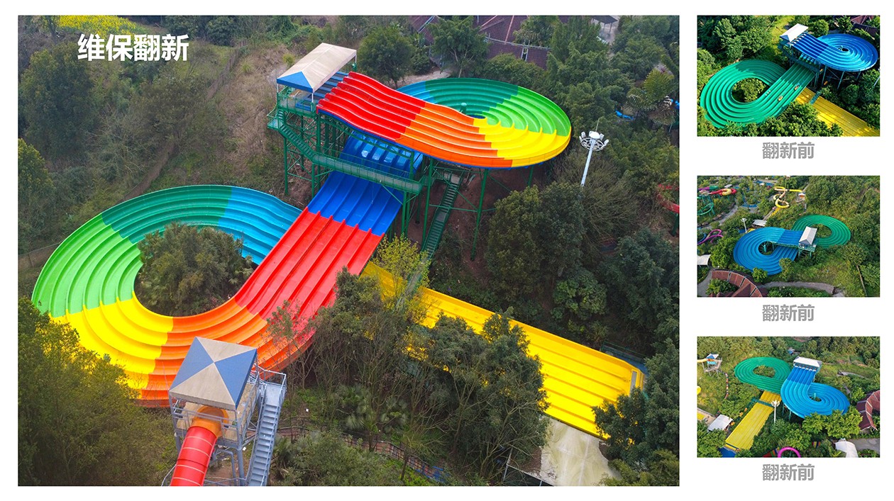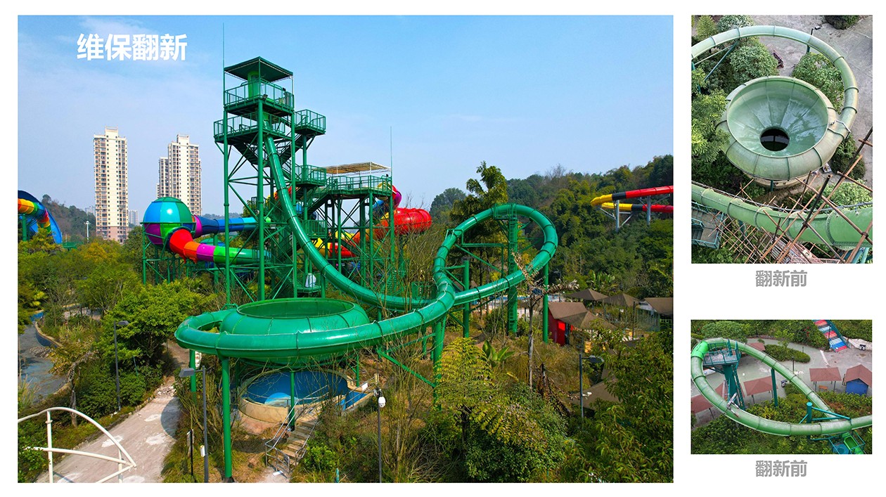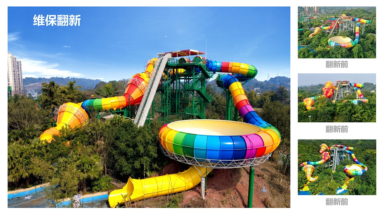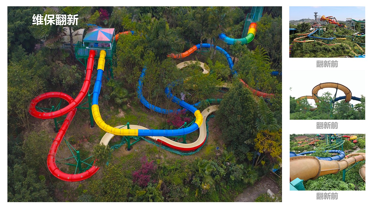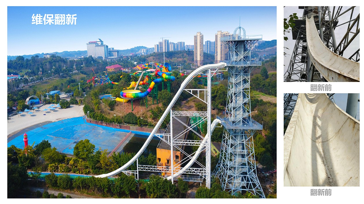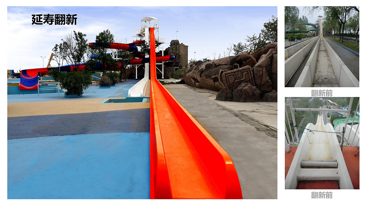 据统计,水上乐园设备尤其是户外水上乐园,经过5至10年的运营使用后,都会因使用环境、运营损耗、维护不当、水滑道特殊的玻璃钢属性等原因造成设备老化,如果您发现您的乐园出现以下现象: