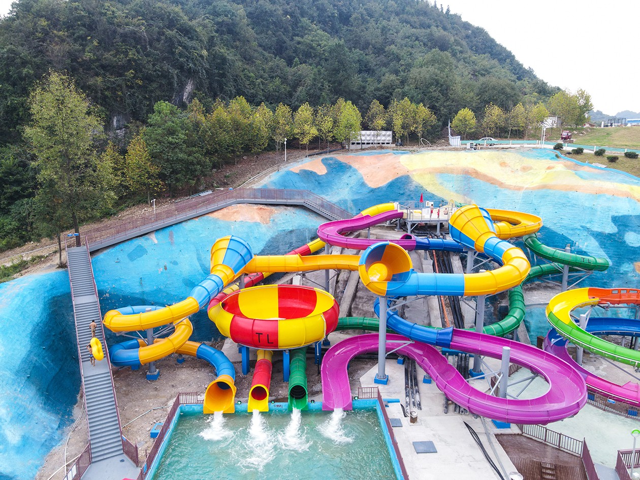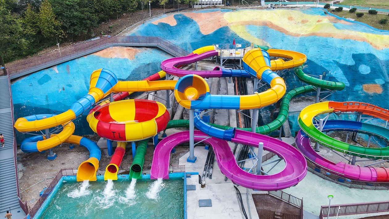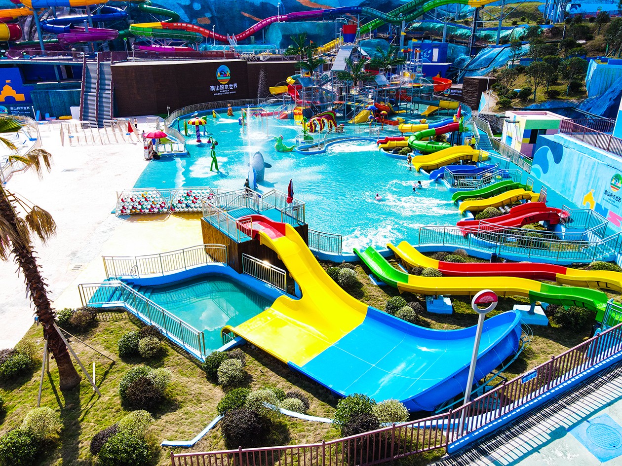 以“积木为核心设计元素,将色彩缤纷的积木造型与水上设施结合,融合红色文化元素,传播红色故事,打造集亲子互动、刺激体验、休闲度假于一体的水上乐园。